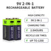 - Option 9V 650mAh: 2x Rechargeable Batteries