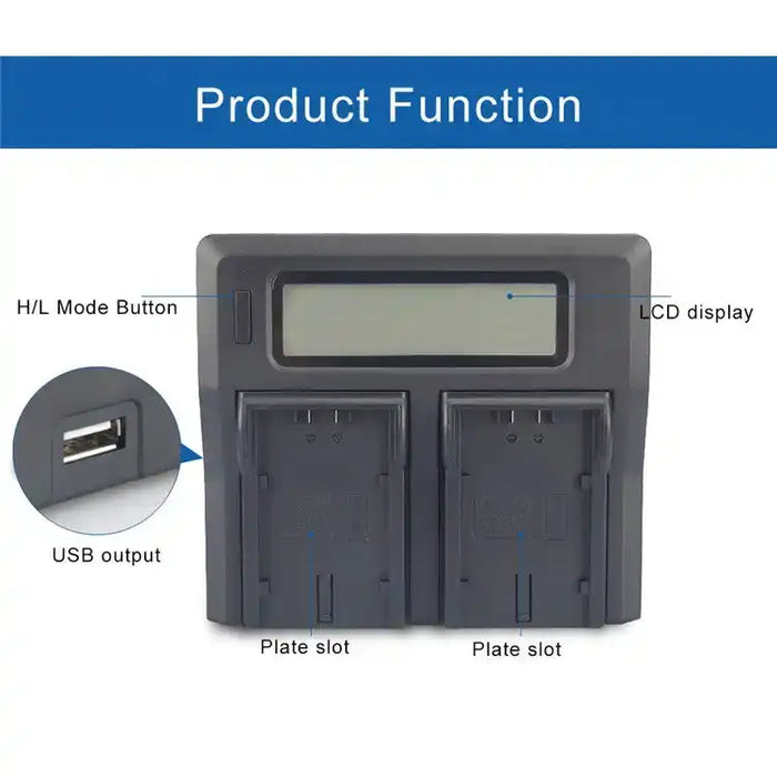 KingMa NP-FM50 Smart Digital Charger | Sony, Panasonic, JVC | Dual Slot | AC/DC | LCD